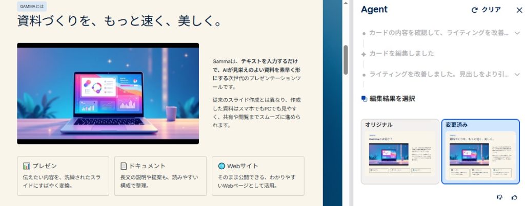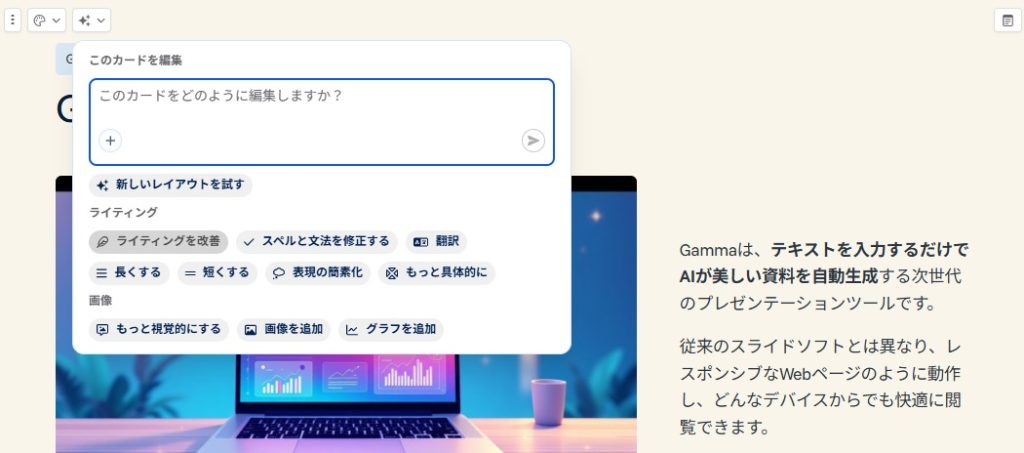 Gammaで「生成した説明資料」を修正する