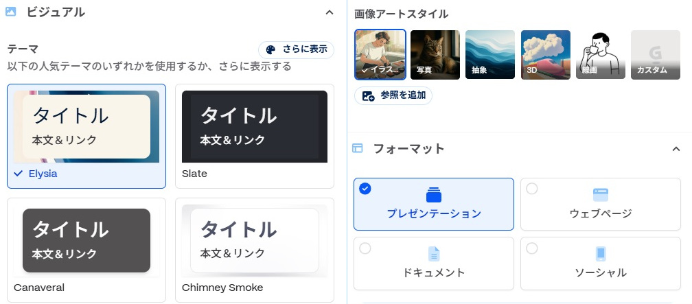 そのため、とにかくスピード重視で資料作成を進めたいなら、Gammaが適しています。